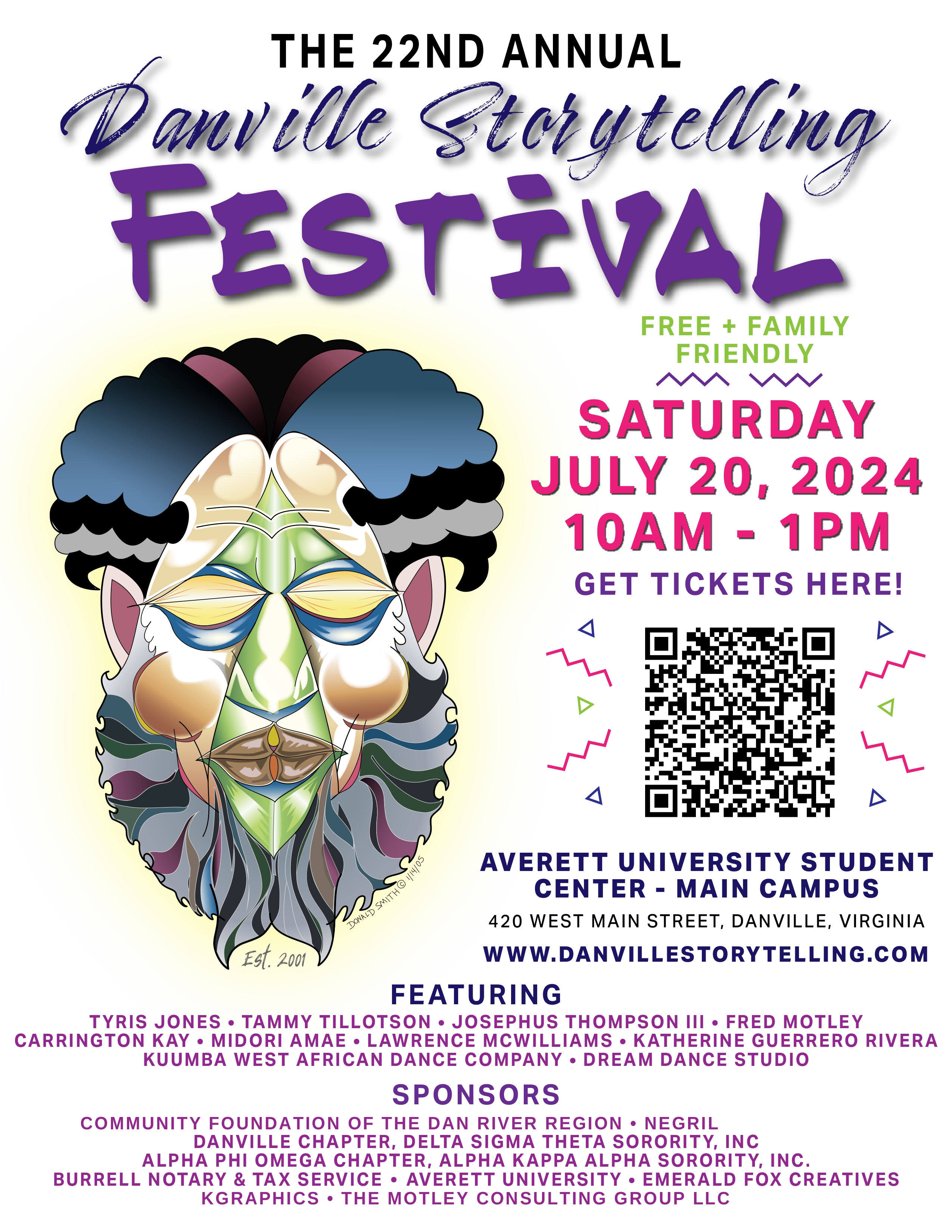 The Danville Storytelling Festival is a family-oriented event that acts as an “artistic social bridge” - bringing communities together and celebrating how we are all connected using the rich tradition of storytelling, performances, and activism. Storytellers, also known as “Griots,” perform different styles of storytelling, collectively creating a multi-cultural and generational experience.